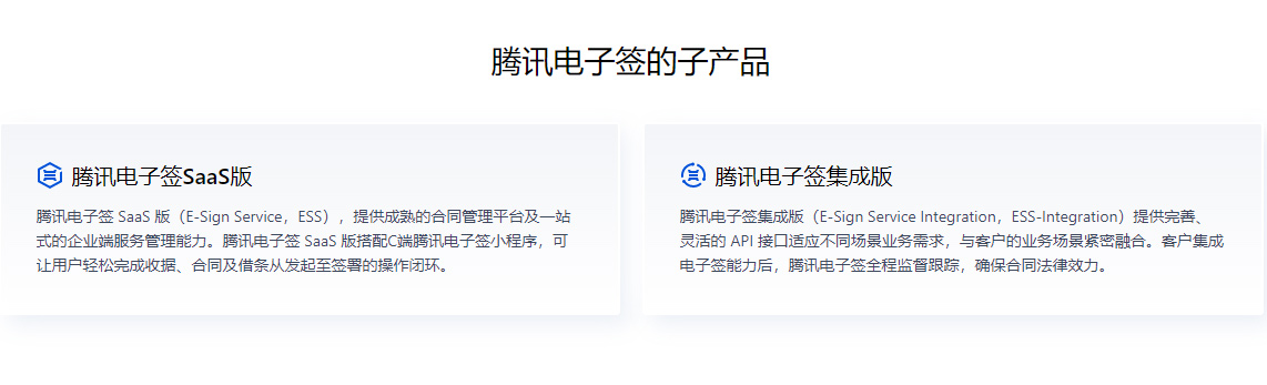 您可以在实名认证的前提下,与约定方完成线上签约,并将签约过程进行存证保全以确保签约公信力。我们为企业用户提供 SaaS 版和集成版两类接入方式,为个人用户提供小程序端及H5端的流畅体验。腾讯电子签致力于降低您的运营成本,提升多端签署效率。