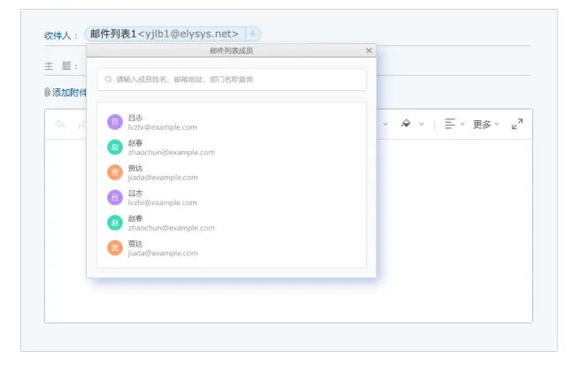 团队管理员可以设置列表成员可见,那么在企业通讯录中查看邮件列表时,团队成员即可可查看列表内成员详情。同时支持在写信页,点击邮件列表,查看列表内成员详情。
