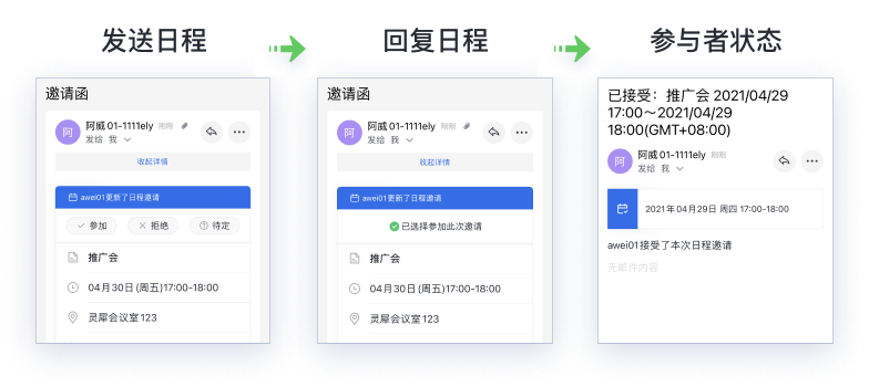 不小心遗忘重要会议?在日程开始前,您将收到提醒邮件,不错过任何一个重要会议。
