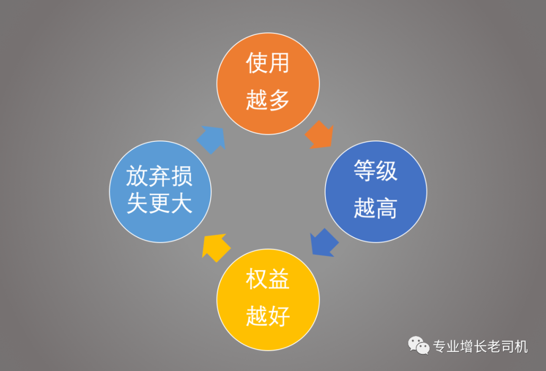 3)构建上瘾模型,用户投入的越多会员权益收益越高,形成上瘾循环,参与度越高用户的流失成本。