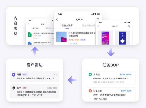 • 内容传递产品价值,行为洞察客户需求,任务SOP指导销售动作