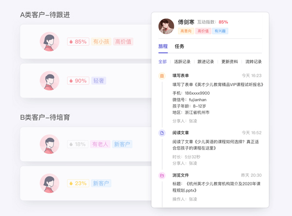 根据历史互动行为智能计算客户的“互动指数”,帮你更加了解每个客户;